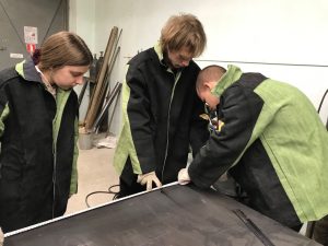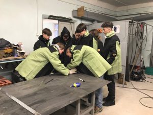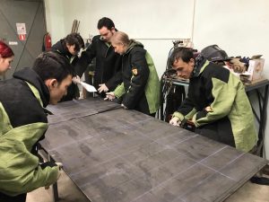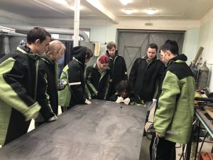 В первый день ребята сдавали теоретическую часть, а во второй день выполняли практическую часть. Студенты были распределены на три бригады, каждая выполняла индивидуальное задание в виде разметки секции по чертежу.
