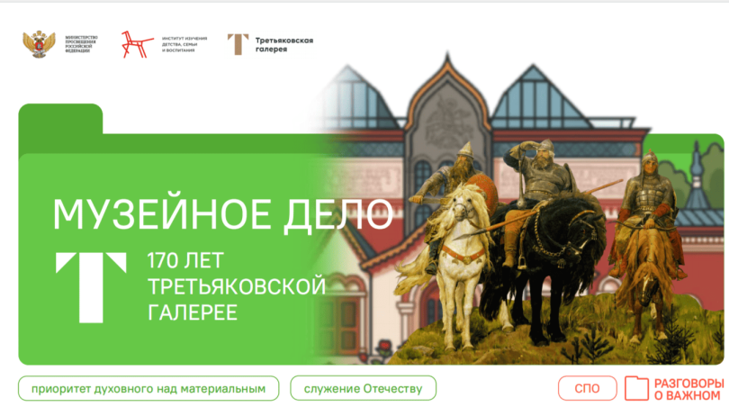 19 января, в рамках Всероссийского проекта «Разговоры о важном» Яруловой А.А. вместе с группой СЭт-125, был проведен кураторский час «Музейное дело. 170 лет Третьяковской галерее».
